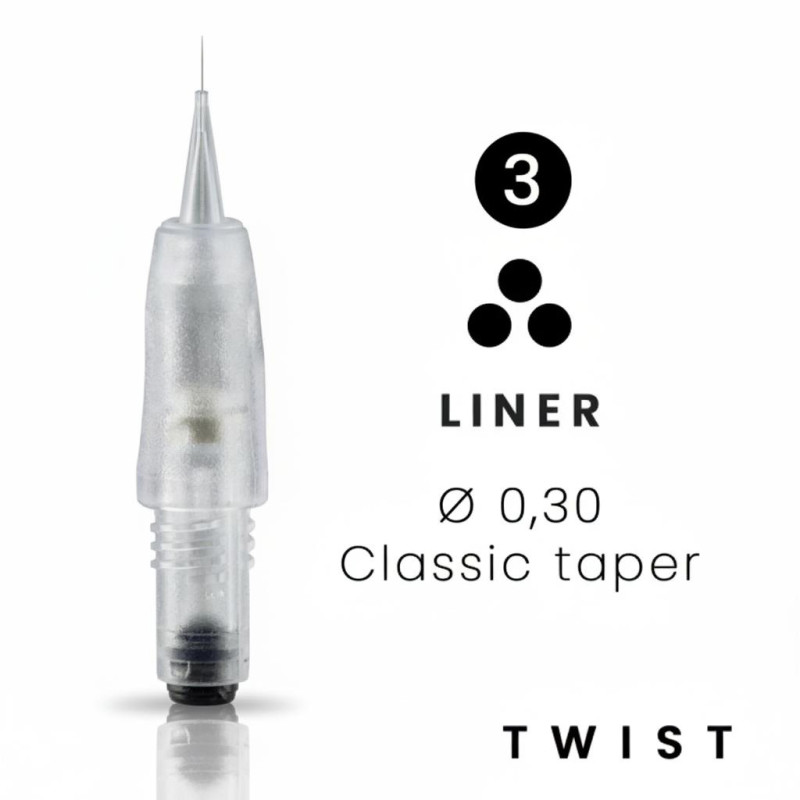 À mesure que le nombre d'aiguilles augmente, l'épaisseur du trait réalisé augmentera également. De plus, vous aurez la possibilité de sélectionner parmi une gamme de diamètres d'aiguilles ainsi que différents taper. Ces deux éléments influenceront l'épaisseur de votre trait. En effet, le diamètre de l'aiguille déterminera la taille de la zone pigmentée, tandis que le taper jouera également un rôle crucial. Un taper plus long signifiera une pointe d'aiguille plus effilée, ce qui produira un résultat plus fin.