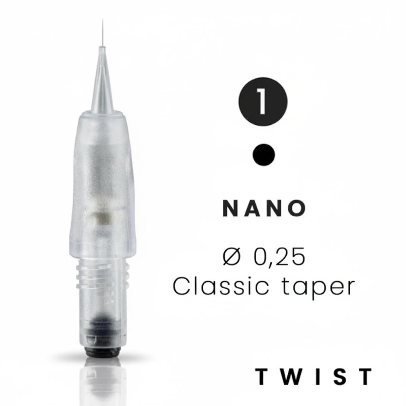 À mesure que le nombre d'aiguilles augmente, l'épaisseur du trait réalisé augmentera également. De plus, vous aurez la possibilité de sélectionner parmi une gamme de diamètres d'aiguilles ainsi que différents taper. Ces deux éléments influenceront l'épaisseur de votre trait. En effet, le diamètre de l'aiguille déterminera la taille de la zone pigmentée, tandis que le taper jouera également un rôle crucial. Un taper plus long signifiera une pointe d'aiguille plus effilée, ce qui produira un résultat plus fin.