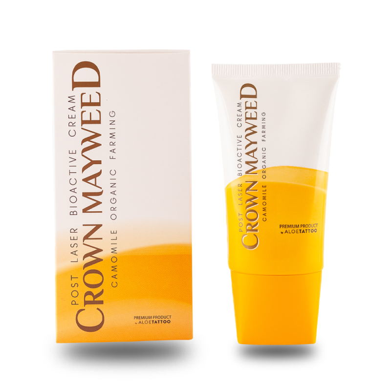 Découvrez la crème Tattoo post laser bioactive Crown Mayweed, enrichie en agents bioactifs de fleur de camomille et dotée d'un indice de protection solaire naturel. Cette lotion sans conservateurs chimiques ni parfums, protège et favorise la régénération rapide de la peau juste après vos prestations. Apportez à votre peau le soin qu'elle mérite avec cette crème apaisante et réparatrice.