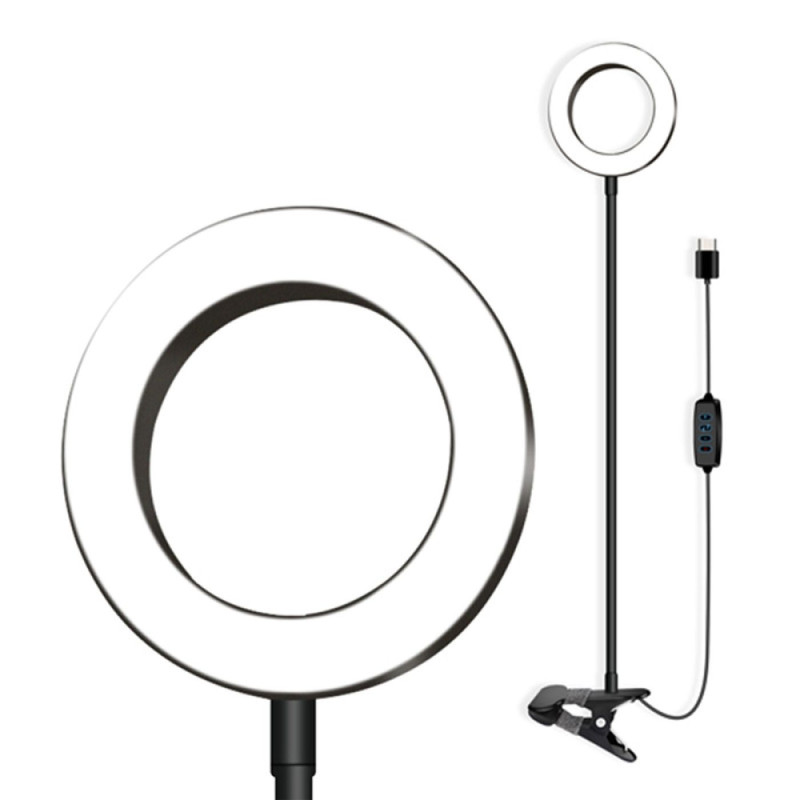 Lampe LED circulaire avec pince réglable pour une fixation sur tout type de support. Éclairage puissant et ajustable pour les tatoueurs et perceurs.