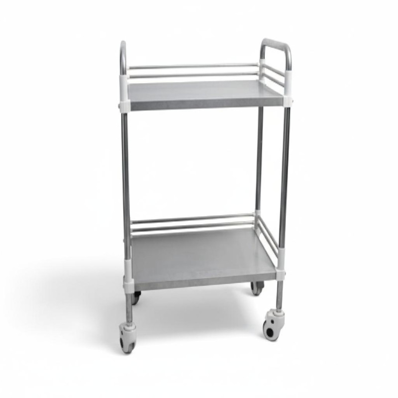 Le guéridon en inox sur roulettes, avec ses deux plateaux, permet d'organiser tout votre matériel de tatouage et piercing, assurant flexibilité et efficacité dans votre shop.